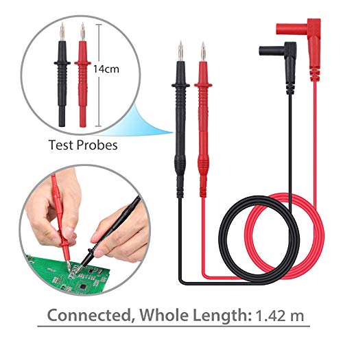 Justech 8 Pezzi Puntali da Test per Multimetro/Kit Professionale Elettronico Multimetro Puntali/Kit Test Lead da Ricambio Include Estensione Testa Sonda Mini Alligatore Clip a Coccodrillo