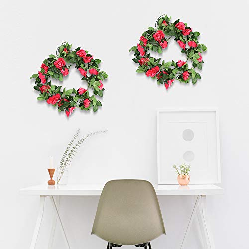❀Confezione da 2 confezioni di ghirlande di fiori di rose artificiali, 220 cm / 7,2 piedi di lunghezza appesi fiori di rose pendenti, 2 pezzi totalmente 14,4 piedi, testa di rosa di circa 8 cm di diametro. Ogni vite artificiale ha 16 pezzi di capolini e foglie verdi.