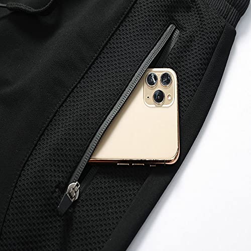 JustSun Pantaloncini Uomo Running Sportivi Cotone con Zip Tasche e Vita Elasticizzata Nero L