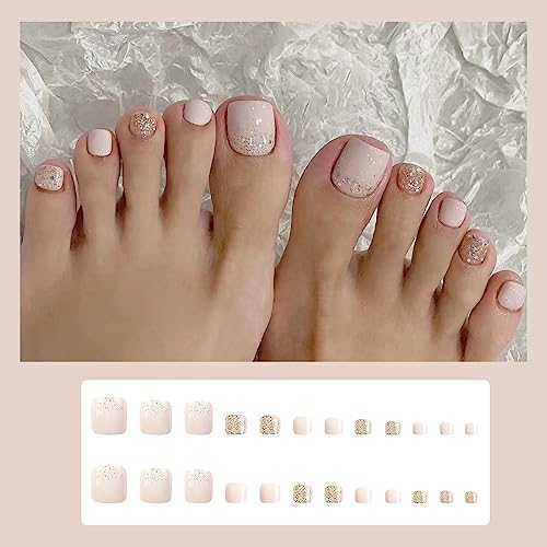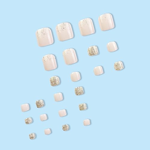 Riceverai 24 unghie finte dei piedi, 1 foglio adesivo gelatinoso, 1 mini bastone di legno e 1 mini lima per unghie dei piedi, unghie finte corte per le tue esigenze quotidiane per ottenere belle velocemente, renderti un'arte delle unghie dei piedi in pochi minuti.