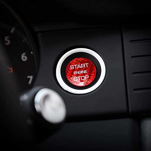 M.JVisun Fibra di Carbonio Auto Accensione Avviamento Interruttore Adesivi Motore Start Stop Pulsante Cover per Land Rover Discovery Sport per Range Rover Evoque Velar - Per Concavo Pulsante - Rosso