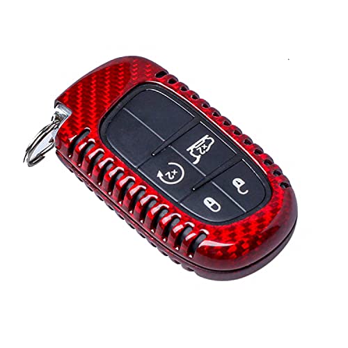 M.JVisun Genuino Fibra di Carbonio Auto Chiave Protettiva Custodie Cover per Jeep Cherokee Compass Grand Cherokee SRT Renegade Intelligente Chiave - B Stile - Rosso
