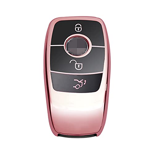 M.JVisun Morbido TPU Chiave Auto Protettiva Custodie Cover per Mercedes-Benz 2019-2021 A-Classe C-Classe G-Classe 2017-2021 E-Classe 2018-2021 S-Classe - Lucido Rosa - Intrecciato Portachiavi