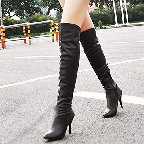 Jwans Botas largas de Invierno para Mujer de Cuero con Punta puntiaguda Impermeable con Cremallera Zapatos Casuales de Tacón Alto Botas cálidas antideslizantes por encima de la rodilla para Mujer