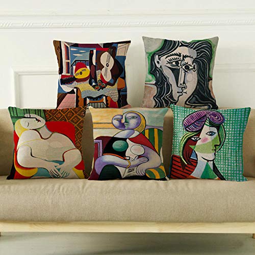 JWEK Federa 5 Pezzo Set Divano Creativo Abbraccio Federa Stampa Abbraccio Federa Picasso Pittura Stampa Abbraccio Federa Stampa Arte Cuscino Soggiorno Decorazione 45X45Cm