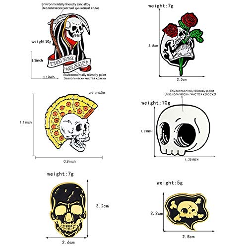 JWGD Gioielli Amante Skull Colonna Pins Punk Pizza Crystal Rose Scheletro del Cranio Grim Reaper Spilla Pin del Risvolto dello Smalto all'Ingrosso Pin Badge (Taglia: Style10)