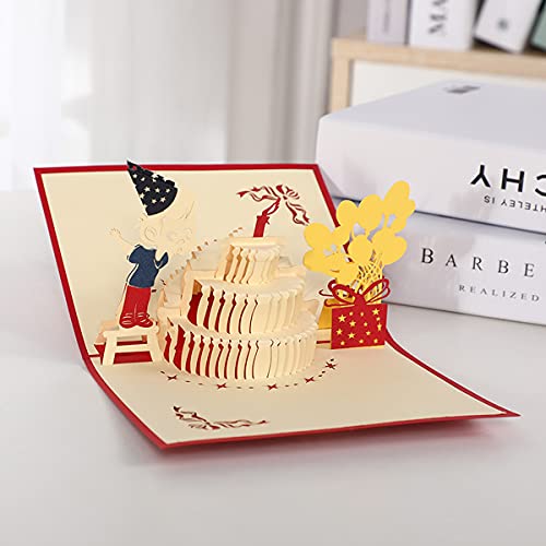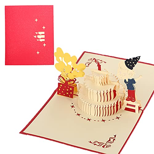 Jxuzh Biglietto di auguri con animazione 3D a 3 strati e scritta in lingua inglese "Happy Birthday", a forma di torta con una candela rossa, busta abbinata, perfetto per un regalo agli amici, in famiglia e per i bambini