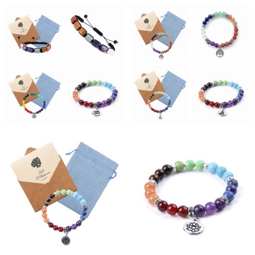 Splendido regalo: riceverai un braccialetto con le perle dei 7 chakra e un biglietto di auguri retrò marrone, una busta marrone e un bellissimo sacchetto regalo blu