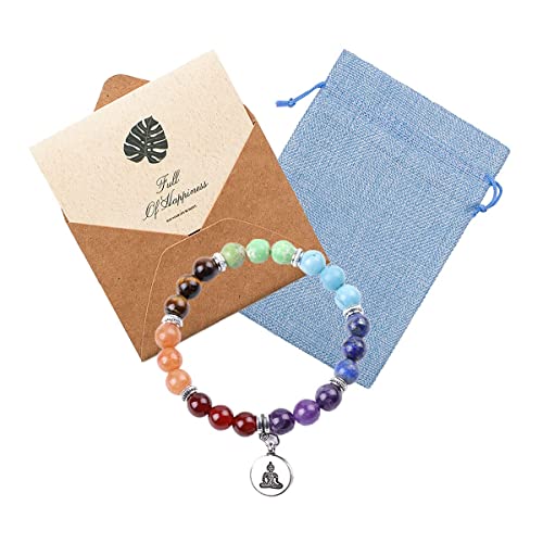 Jxuzh - Braccialetto con le perle dei 7 chakra, con pietre naturali di 8 mm, 19.5 centimeters, Pietra