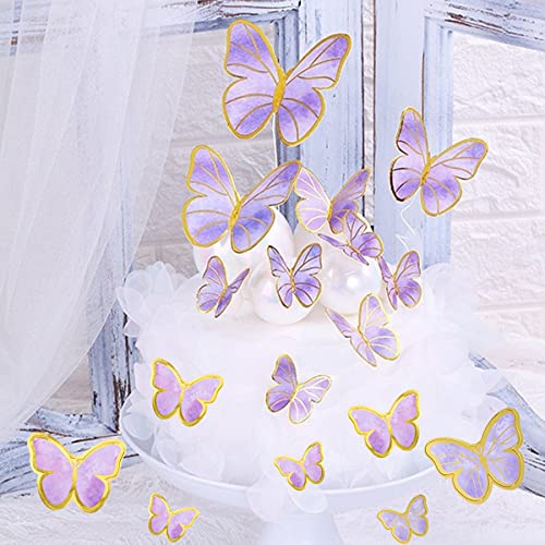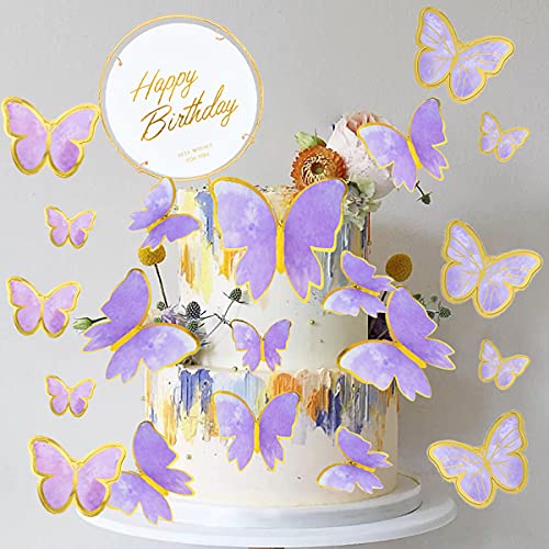 Set di decorazioni per torte: include 20 topper per torta con farfalle e 1 topper per torta "Happy Birthday". 2 diversi stili e 5 diverse misure. Ci sono due colori di viola e rosa a scelta.