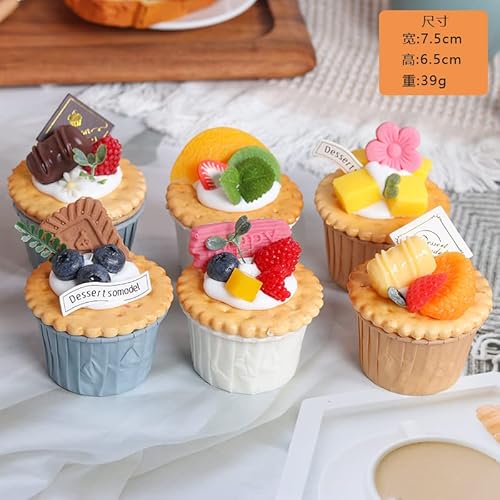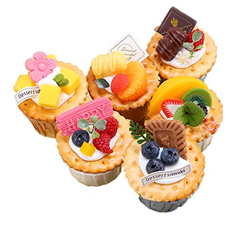 JYCRA 6 Pezzi Cupcake di Frutta Artificiale, Modelli di Torte Finte alla Crema Dolci Assortiti per Decorazioni per Feste di Compleanno per Feste in Cucina a Casa Negozio(#1)