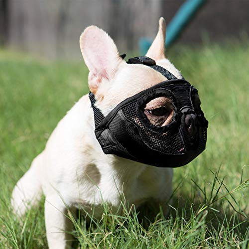 Materiale: la morbida museruola per cani è realizzata in rete traspirante, museruola in rete per bulldog francese, rende il cane più traspirante e più confortevole.