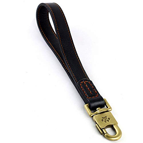 JYHY Guinzaglio corto per cani in vera pelle, intrecciato per cani di grossa taglia e camminare, nero