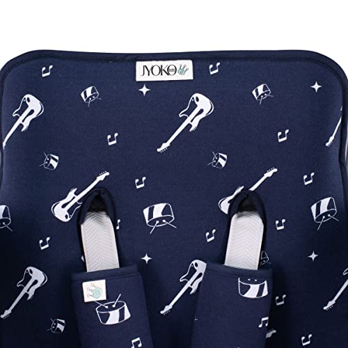 JYOKO KIDS Cuscino Passeggino Universale + Protezione per Cintura di Sicurezza, Materassino Universale per Carrozina Realizzato in Tessuto di Cotone + Schiuma e Tecnico Traspirante (Rock Hero)