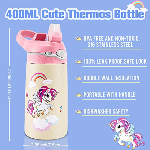 JYPS Borracce per bambini da 400 ml con cannuccia, in acciaio inox per la scuola, isolate sottovuoto, in metallo che può mantenere freddo o caldo (Arcobaleno)