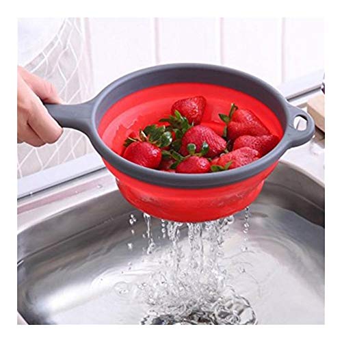 JYSLI Scolapasta pieghevole inferiore per frutta verdura e verdura colino portatile in silicone scolapasta pieghevole con manico utensili da cucina 1PC organizer (colore: rosso)