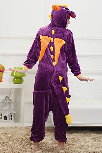 JYSport, pigiama unisex in pile, con motivo: unicorno, con cappuccio, per donna, uomo, bambini, purple dargon, M: 158-168 cm