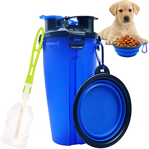 JYTZ Bottiglia d'Acqua e Cibo per Cane, Portatile Contenitore Cibo Cani con Ciotole Pieghevole e Pennello per Pulizia 2 in 1 Borraccia per Animali Domestici e Contenitore per Alimenti