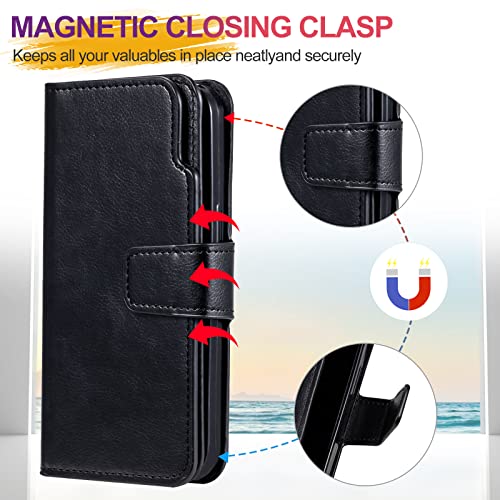 Design a portafoglio: Dotato di 9 Slot per carte, 3 Slot per portafoglio e chiusura magnetica, può trasportare 9 carte e alcune banconote mentre si chiude perfettamente.Elegante patta custodia con chiusura magnetica, mantiene il telefono, la carta e i contanti al sicuro ma consente un facile accesso quando ne hai bisogno
