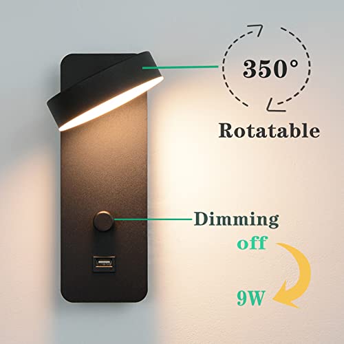 JZCDR Lettura Aplique LED da Parete Interni Lampada da Parete Interruttore Orientabile Applique Camera Da Letto Parete Moderna Lampada da Muro Luminosità Regolabile Bambini Cameretta Lounge,Nero