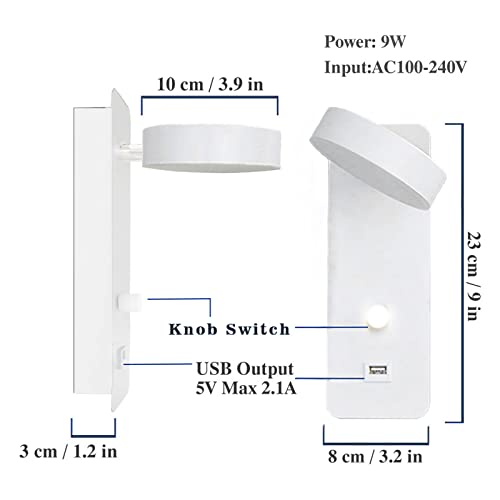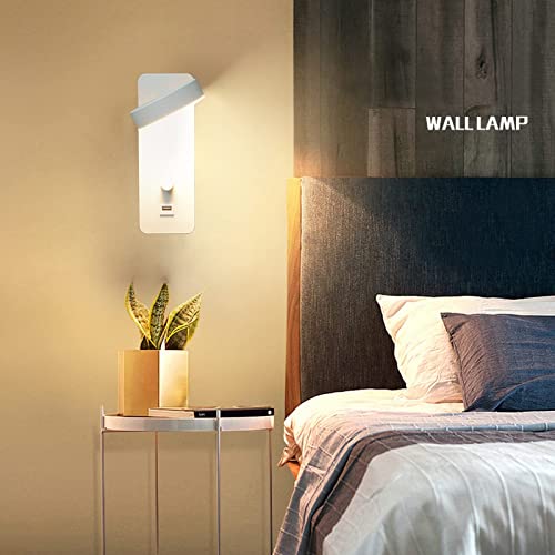 JZCDR Lettura Aplique LED da Parete Interni Lampada da Parete Interruttore Orientabile 9W Applique Camera Da Letto Parete Moderna Lampada da Muro Luminosità Regolabile Bambini Cameretta Lounge,Bianca