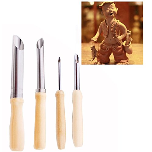Jzhen 4Pcs/Set Strumento Argilla Crcolare in Acciaio Inox, Strumento per Incisione e Punzonatura in Argilla, Realizzato in Acciaio Inossidabile e Legno per Perforare Fori Rotondi e Incisioni