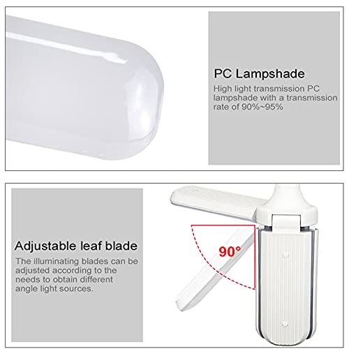 JZlamp 45W 60W Pieghevole Fan Blade E27 LED Lampada No Flicker E27 LED Lampadina Lampadina 110V 220V Angolo Regolabile a soffitto LED Lampadine per la casa (2 pz),Warm White,45W