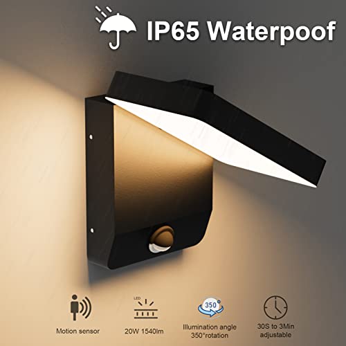 K-Bright LED applique esterno con Sensore di Movimento, Lampada da Parete Esterno 20W 1540lm Bianco caldo 3000K IP65 nero(rettangolo)
