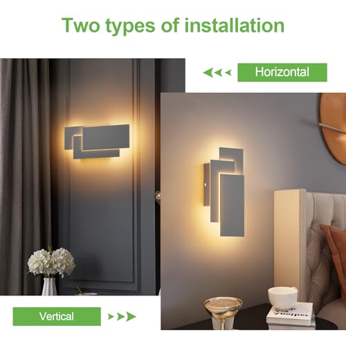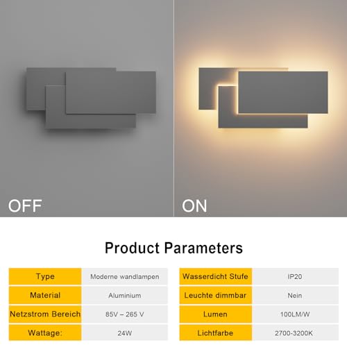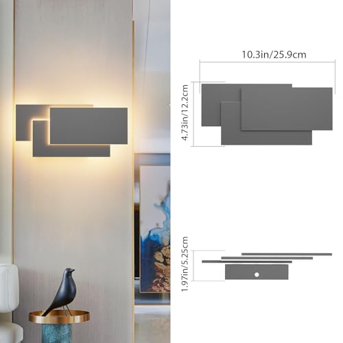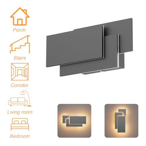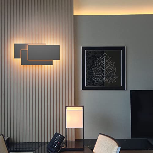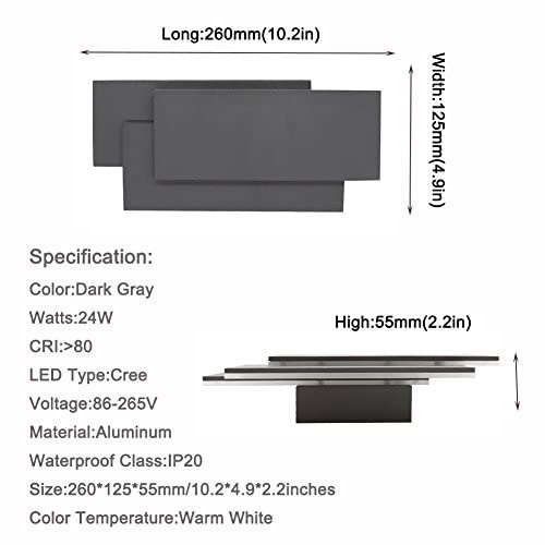 K-Bright 24W Lampada da Parete Applique da Parete Interni Moderno LED Bianco Caldo 3000K Lampada da Muro per Soggiorno, Camera da letto, Corridoio, Scale (Grigio scuro)