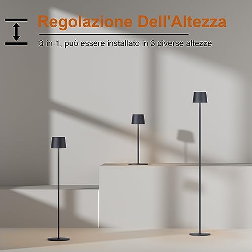 ✔【Altezza Regolabile】La lampada da terra a LED ricaricabile è composta da 3 aste in alluminio, 1 testa di lampada e 1 robusta base in metallo. Le 3 aste possono essere staccate e si può regolare l'altezza della lampada da soli. L'altezza totale della lampada da terra a batteria è di 130 cm, pari all'incirca all'altezza delle spalle di una persona di 1,6 m di altezza. Utilizzando 1 asta per l'installazione, si otterrà una lampada da tavolo alta.