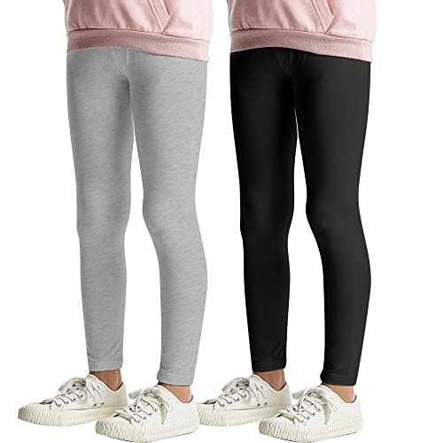 L&K-II Leggings per Bambini di Base Uni Colore Ragazze Pantaloni da Ballo Leggings per Bambini Pantaloni Fitness in Cotone 2708 Nero+Grigio-134