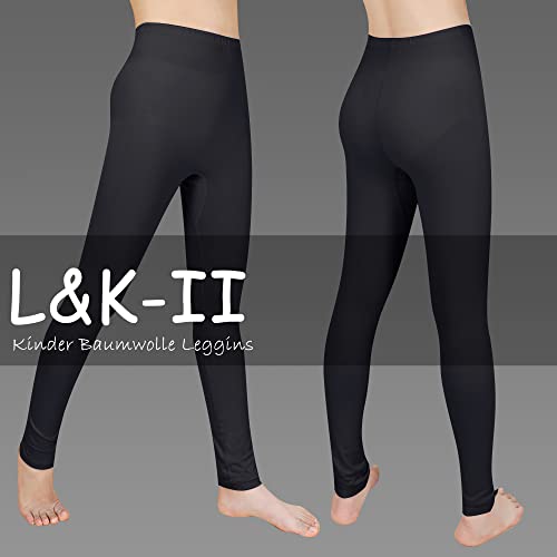 L&K-II Leggings per Bambini di Base Uni Colore Ragazze Pantaloni da Ballo Leggings per Bambini Pantaloni Fitness in Cotone 2708 Nero-146