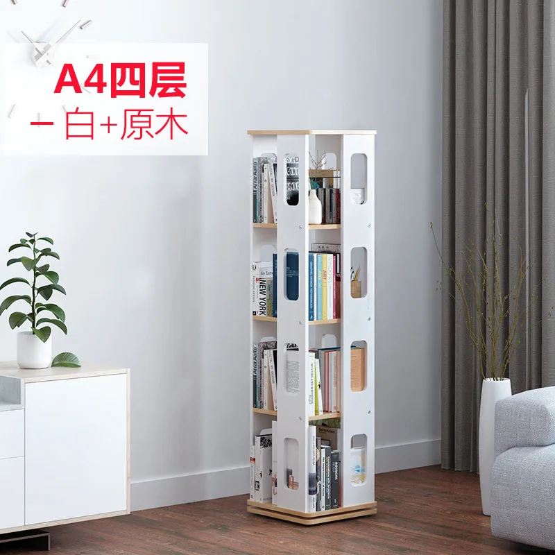 K-STAR 360 Degree Rotating Bookshelf Solid Wood Storage Shelve For Children Living Room Shelves Books Magazine Organizer New