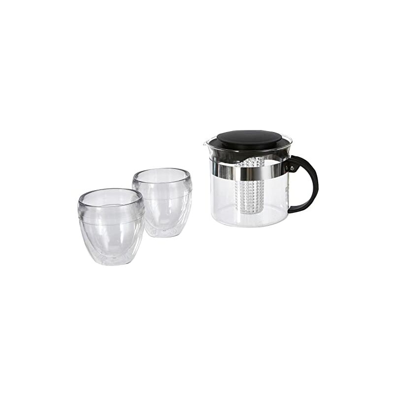 Bodum K1875-01 Bistro Set 2 Bicchieri PAVINA OUTDOOR, 0.25 L + Teiera con filtro in plastica, 1 litro