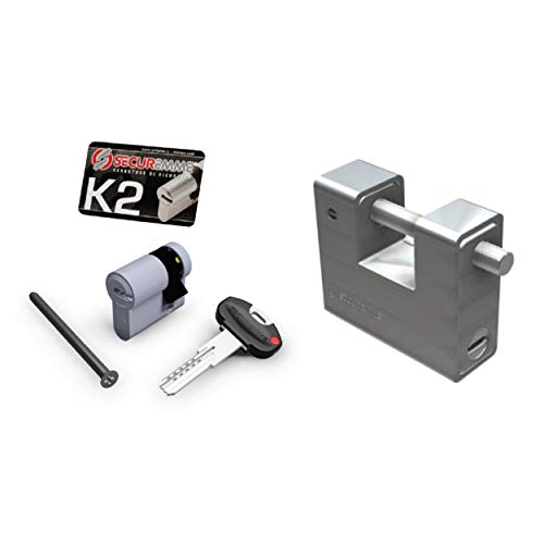 Art. K27500 LUCCHETTO SECUREMME per serranda MONOBLOCCO Cromo satinato mezzo cilindro 30-10 K2 incluso 1 chiave cantiere 3 chiavi punzonate - mm - 96 - Luce - 39