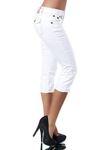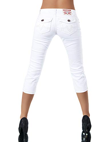 K900 Capri Pantaloni Jeans da Donna, Jeans Capri Pantaloni Capri Jeans Bermuda spessore cuciture. bianco W40