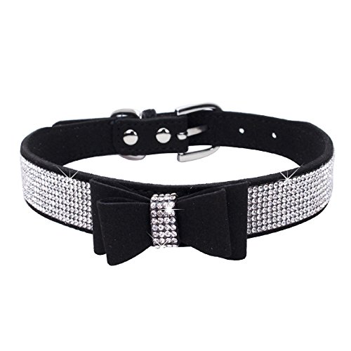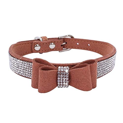 KaariFirefly - Collare per cani con strass resistenti all'usura, in pelle scamosciata, con fiocco, per cuccioli, gatti, con fibbia regolabile, colore: Rosso S