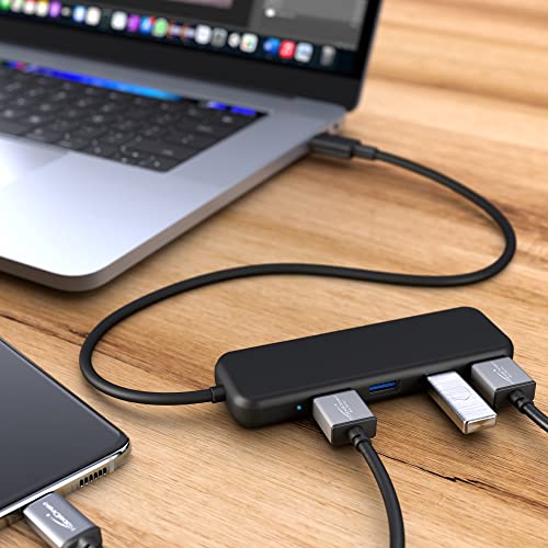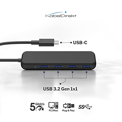 KabelDirekt - Hub USB e adattatore, connettore USB-C, 4 porte USB 3.0 (design sottile, per più collegamenti a PC/tablet/smartphone, compatibile con MacBook, USB SuperSpeed con 5 Gbit/s, nero)