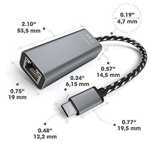 KabelDirekt - Adattatore USB-C-Ethernet e Adattatore LAN (connettore USB-C/connettore RJ45, Rete/Internet Stabile per Notebook/MacBook/Tablet con 1 Gbit/s, Lunghezza Cavo 10 cm, Alluminio, Argento)