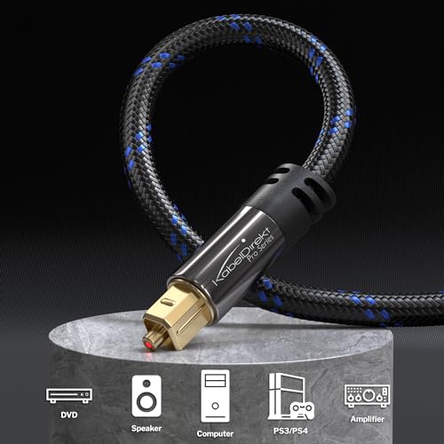 KabelDirekt - Cavo TOSLINK, cavo audio ottico con perdita di segnale dello 0% - 0,5 m - Cavo in fibra ottica (TOSLINK su TOSLINK, cavo digitale S/PDIF, soundbar, Xbox/PS4, intrecciato in Nylon)