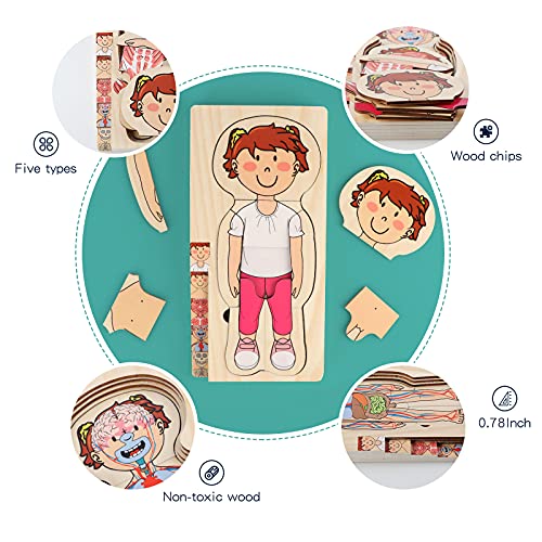 KABENFIS 29 Pezzi Gioco di Anatomia per Ragazze Puzzle in Legno per Bambini Ragazzi e Ragazze