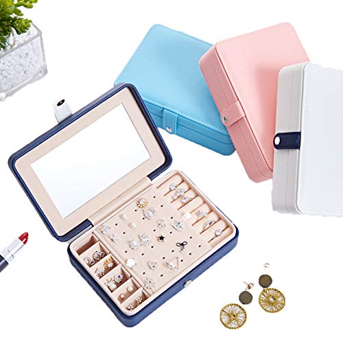 Kabinga Scatola portatile per orecchini ad anello, multifunzione, in poliuretano, con specchio, rosa, taglia M