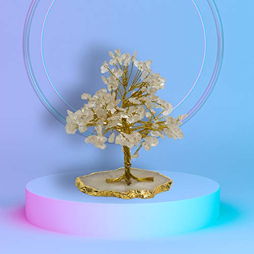 KACHVI Clear Crystal Multi Color Crystal Slice Base Tree Tumbled Stones Money Tree, Gemstone Feng Shui Ornaments Healing Crystal Tree Figurines, Agate Slice Geode Quartz