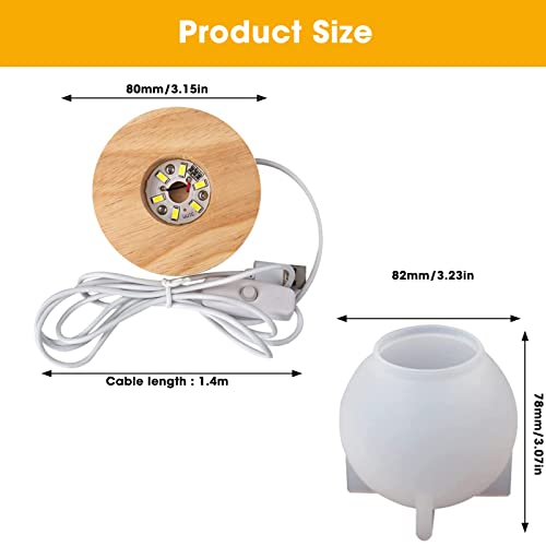 Kacsoo Stampo in silicone a forma di sfera a LED, con 2 basi in legno, 80 mm, rotondo, in silicone, per luce notturna fai da te