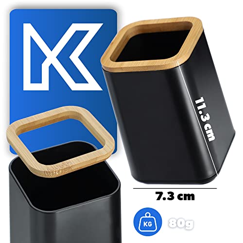 KADAX Set da bagno, dispenser di sapone, bicchiere per spazzolini e scopino WC in 6 varianti di colore, moderno accessorio da bagno con bambù naturale, accessori da bagno (nero)