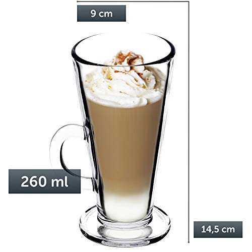 KADAX Latte Macchiato Bicchieri, 260 ml, Set di 6, Bicchieri con manico, Bicchieri in Vetro, Bicchieri da Tè, Bicchieri da Cappuccino, Tazzine da Caffè Vetro