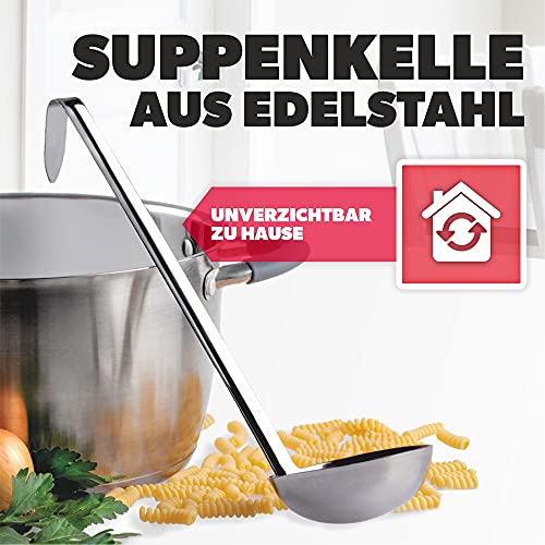 LA CARATTERISTICA UTILE DEL PRODOTTO È IL SUO MANICO LUNGO E COMODO CHE PERMETTE DI MANOVRARE CON IL MESTOLO LIBERAMENTE, di prendere in modo sicuro la zuppa o la salsa dalla pentola e di versare in modo estetico il liquido nei piatti. Il largo mestolo da minestra impedisce alla minestra preferita di fuoriuscire facilmente ed improvvisamente sul pavimento, di sporcare i vestiti o di bruciare le mani con il liquido caldo.