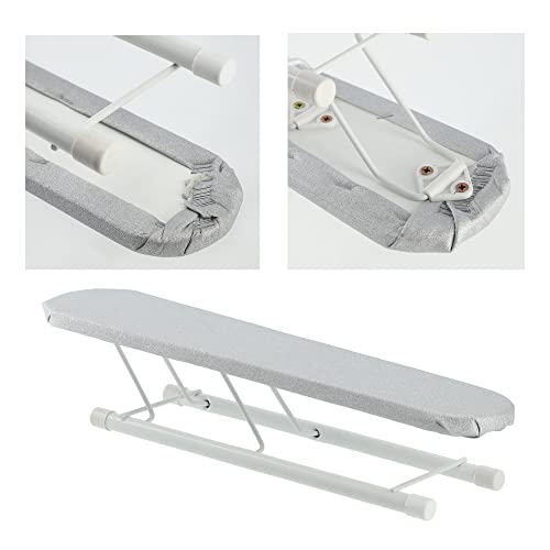 KADAX Mini asse da stiro per maniche e polsini, 50 x 11 cm, asse da stiro con rivestimento decorativo, asse da viaggio pieghevole (grigio)