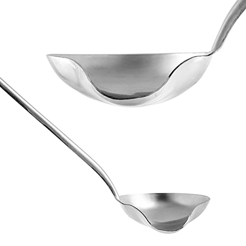 Kadax raschiando, cucchiaio di salsa in acciaio inossidabile, cucchiaio di salsa con gambo lungo, cantina, cucchiaio annaffiato, cucchiaio fuorilegge con gancio ovale, argento, lavastoviglie