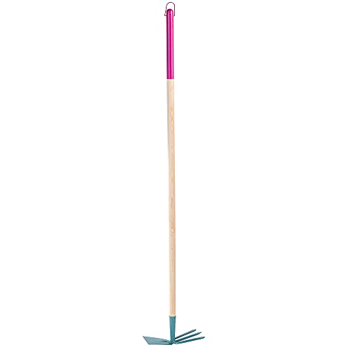 KADAX Zappa Donne, Zappa da Giardino con Testa di Metallo, Doppia Zappa Ventilazione, allentamento e diserbo Pavimento, Zappa delle infestanti Rimuovere Le (3 Denti - Foglia Larga)